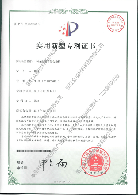 目前,浙江眾創(chuàng)材料科技有限公司已獲得: